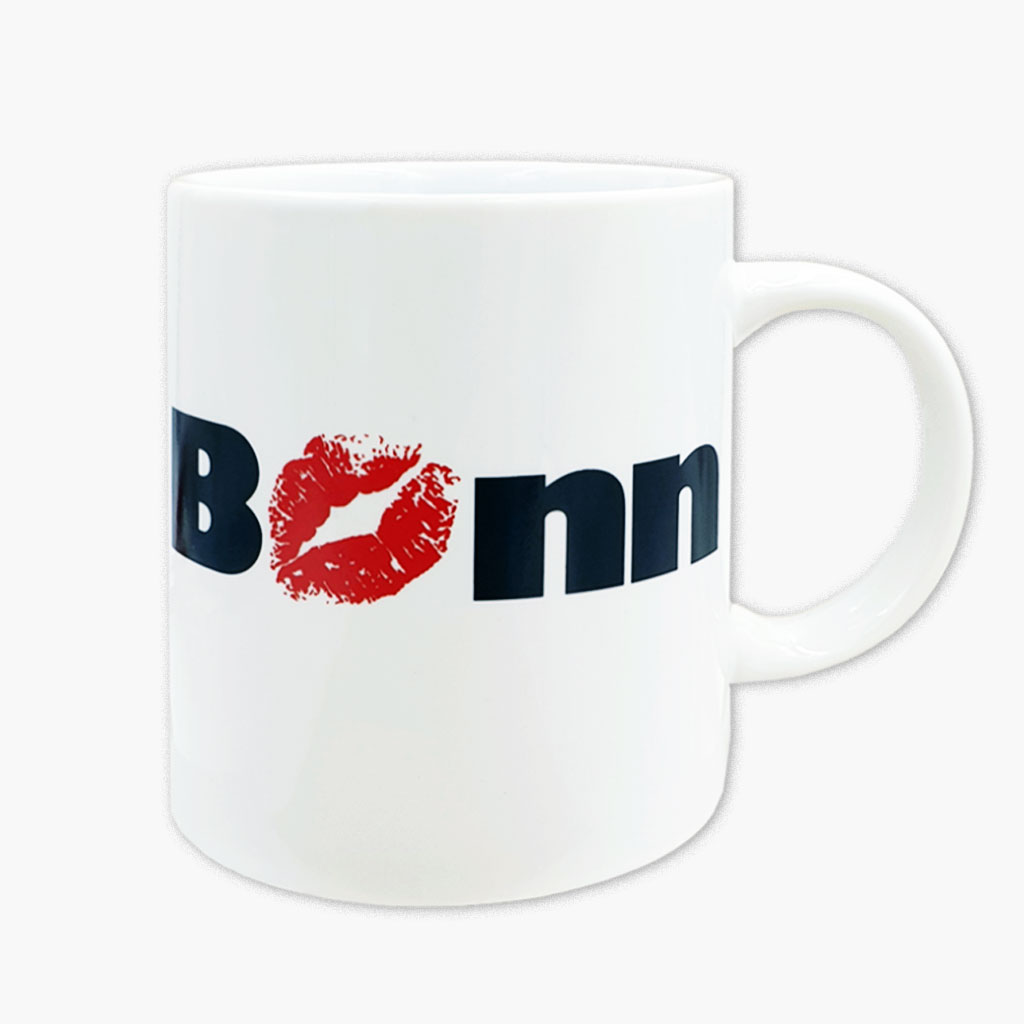Henkelbecher aus Porzellan mit dem Bonner Kussund,